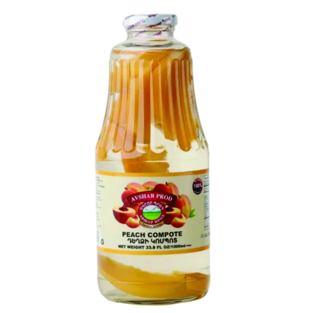Avshar Compote de pêche 1L. Boisson arménienne naturellement sucrée, préparée à partir de pêches mûries au soleil et conservées dans un sirop léger. Son arôme délicat et son goût doux rappellent la fraîcheur des fruits d’été. À servir frais pour un plaisir sain et rafraîchissant.