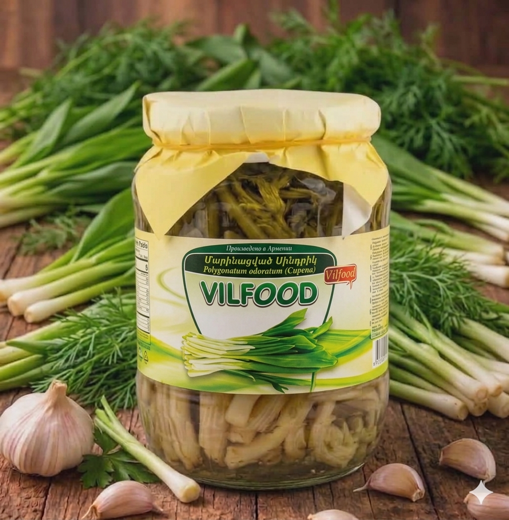Vilfood Sindrik mariné 720 g. Haricots verts arméniens marinés avec des herbes, de l’ail et une touche de vinaigre pour un goût frais et acidulé. Idéal pour les salades, les plats froids ou en accompagnement de viandes grillées.