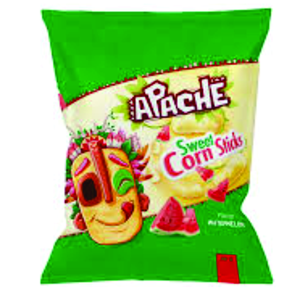 Apache Bâtonnets sucrés au goût de pastèque 85 g. Légers et croustillants, ces bâtonnets de maïs offrent une saveur fruitée et rafraîchissante de pastèque. Une gourmandise estivale et joyeuse à savourer à tout moment.
