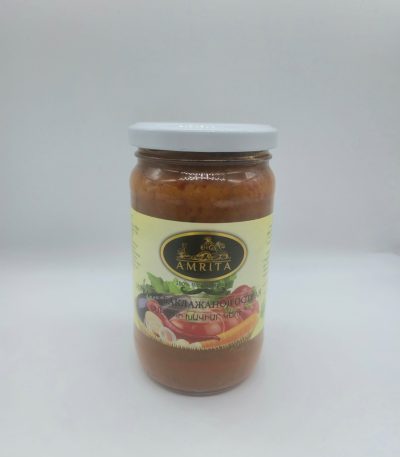🔒 Price visible after approvalAmrita Spicy Eggplant Caviar 380 g. A deliciously bold and aromatic spread made from roasted eggplants, red peppers, and spices. Its rich, smoky flavor with a touch of heat makes it a perfect accompaniment to bread, meat, or grilled vegetables.