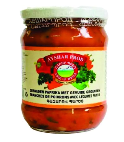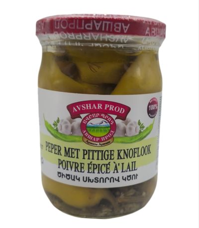 🔒 Price visible after approvalAvshar Poivron piquant à l’ail 500 g. Mildly spicy peppers marinated with fresh garlic for an aromatic, balanced flavor. A traditional Armenian delicacy ideal as a side dish or appetizer.