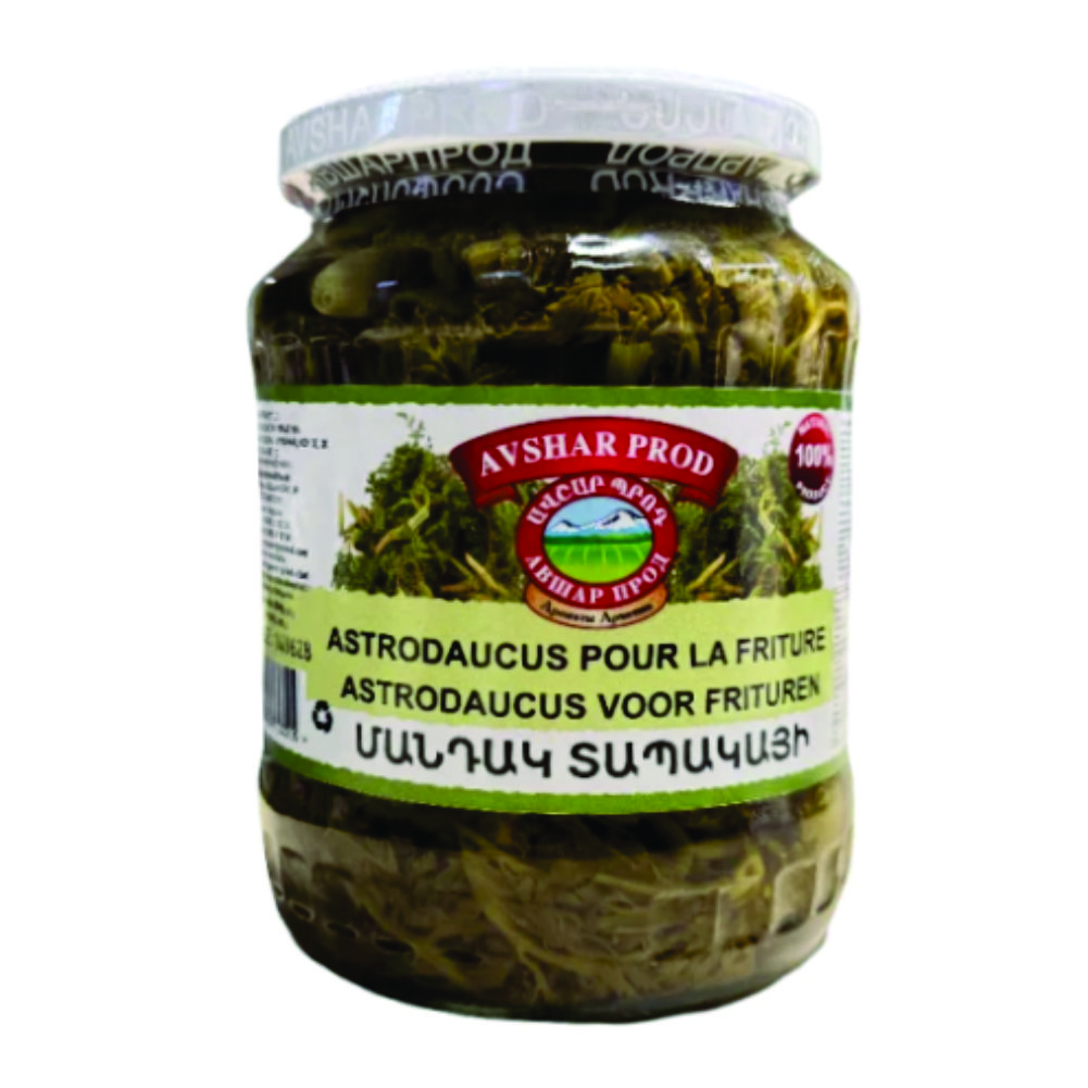 Avshar Fried Astrodaucus (Mandak) 690 g. A unique Armenian specialty made from the wild mountain herb mandak(astrodaucus). Fried and preserved to maintain its natural aroma and slightly bitter-sweet taste. Excellent as a side dish or cold appetizer.