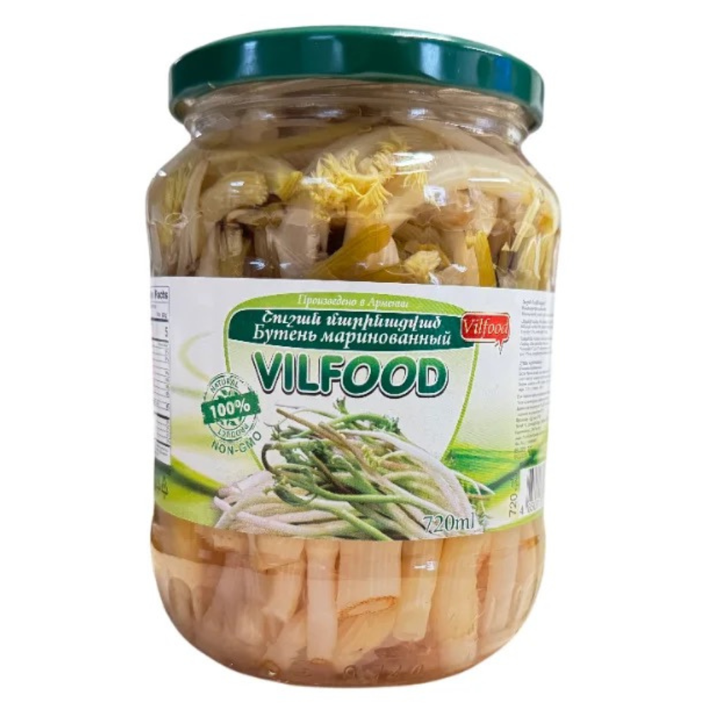 Vilfood Chervil Marinated 705 g. Tender chervil stems marinated with aromatic herbs, garlic, and spices to create a refined, slightly tangy flavor. A perfect garnish or side for both cold and hot dishes.