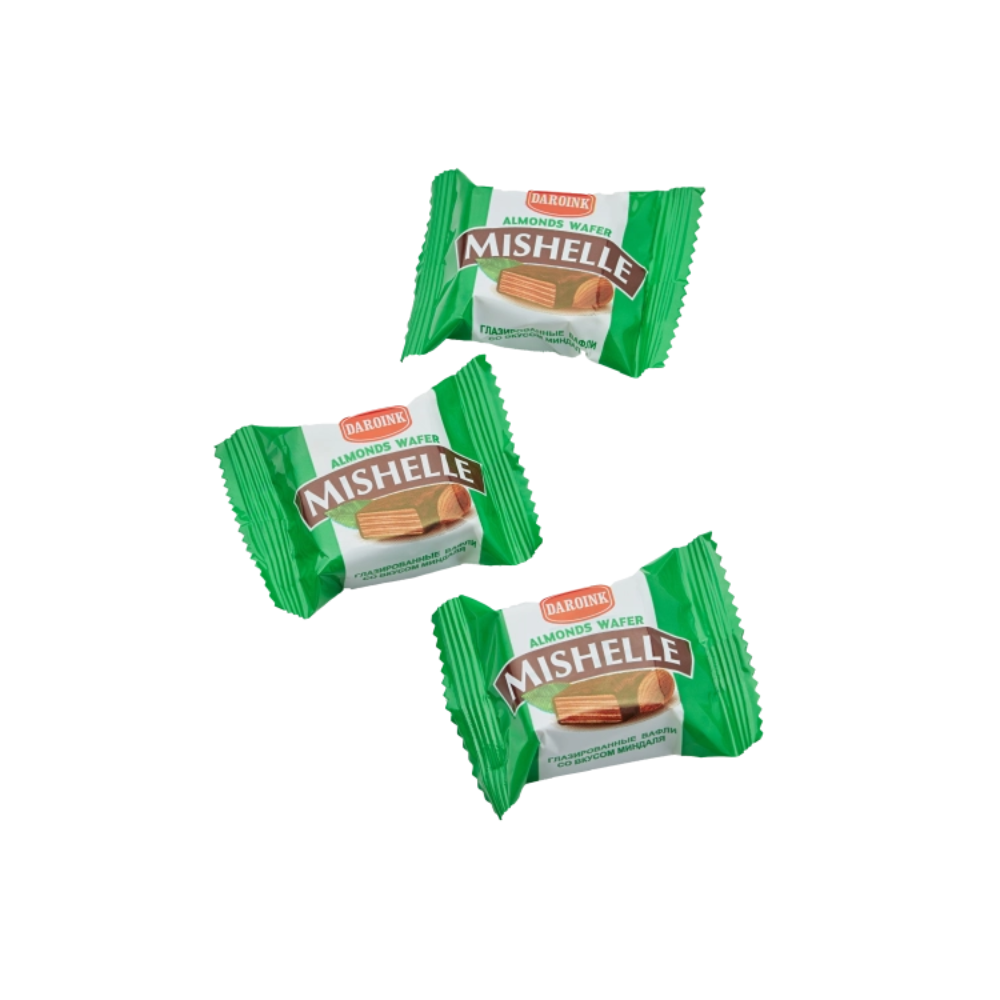 Daroink Mishelle Almond Wafer 1 kg. Delightfully crispy wafers filled with smooth almond cream and coated with a light glaze. The balanced combination of gentle sweetness and roasted almond aroma makes it a perfect treat for coffee breaks or celebrations.