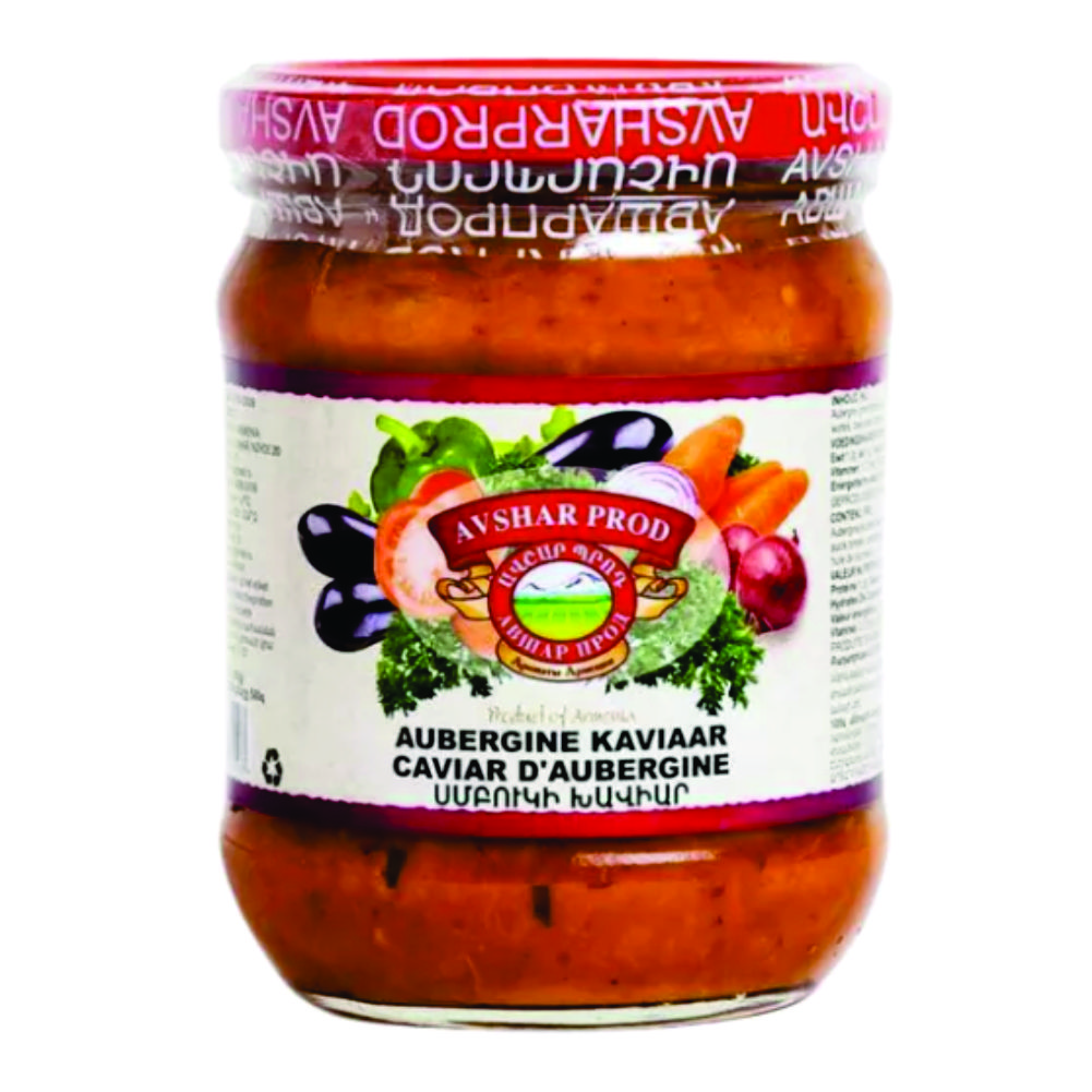 Avshar Eggplant Caviar 500 g. A smooth, flavorful spread made from roasted eggplants, tomatoes, and spices — a beloved classic of Armenian cuisine. Perfect as an appetizer or side dish.