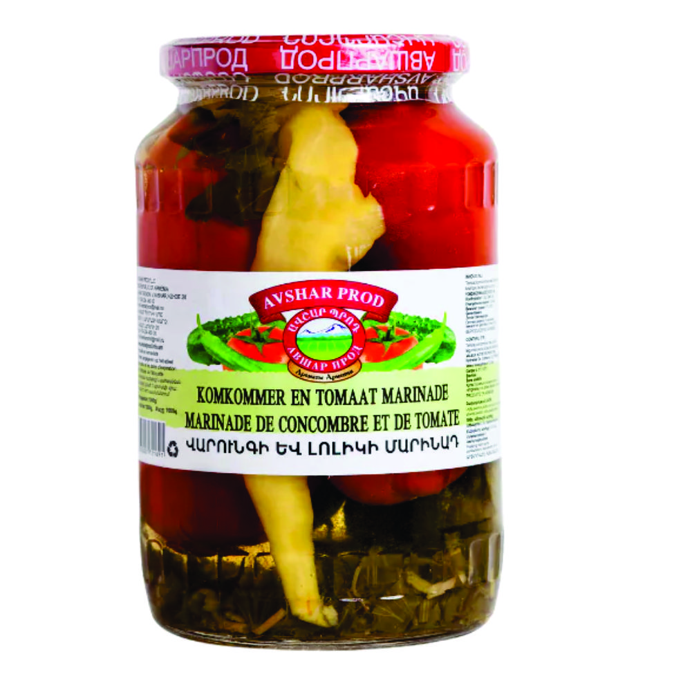 Avshar Маринованные помидоры и огурцы 1 кг. Гармоничное сочетание сочных помидоров и хрустящих огурцов, приготовленных с натуральными травами и специями. Традиционный армянский вкус.